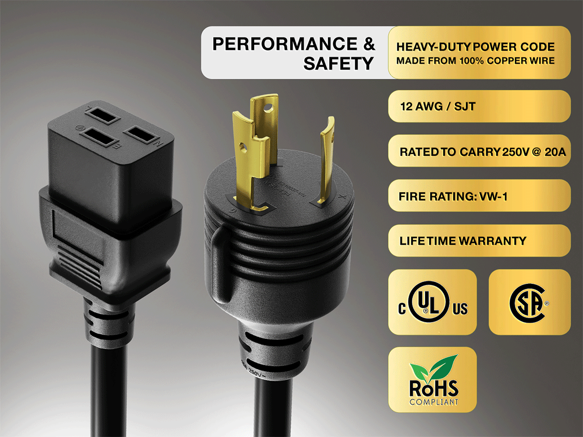• Durable Construction: This heavy duty 12 AWG power cord is fully molded for durability.