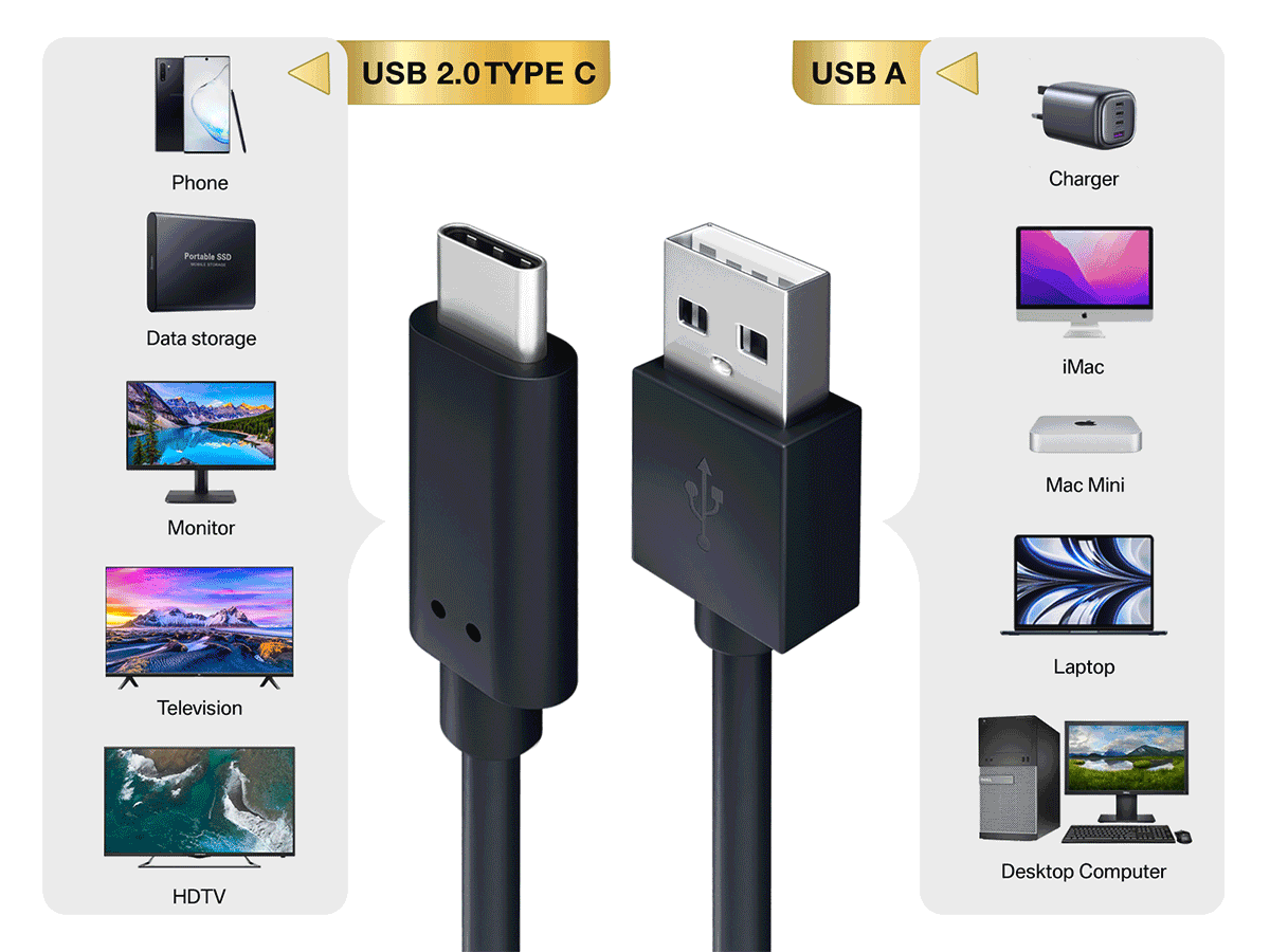 Versatile Connectivity: Designed with USB Type-C Male to USB Type-A Male connectors, offering compatibility with a wide range of devices for seamless connectivity.