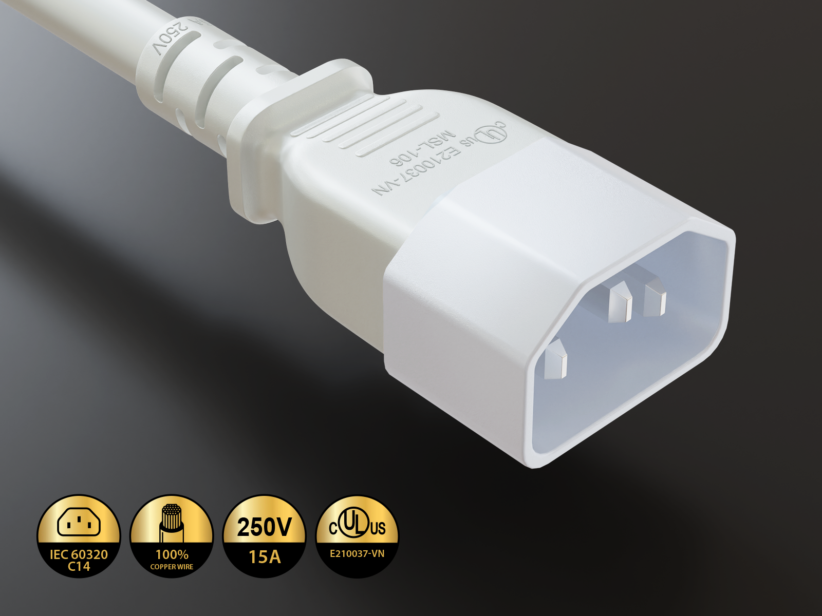 Versatile connectivity: Connect network hardware or other high-temperature equipment to PDUs or UPSs with C14 type input in a data center.