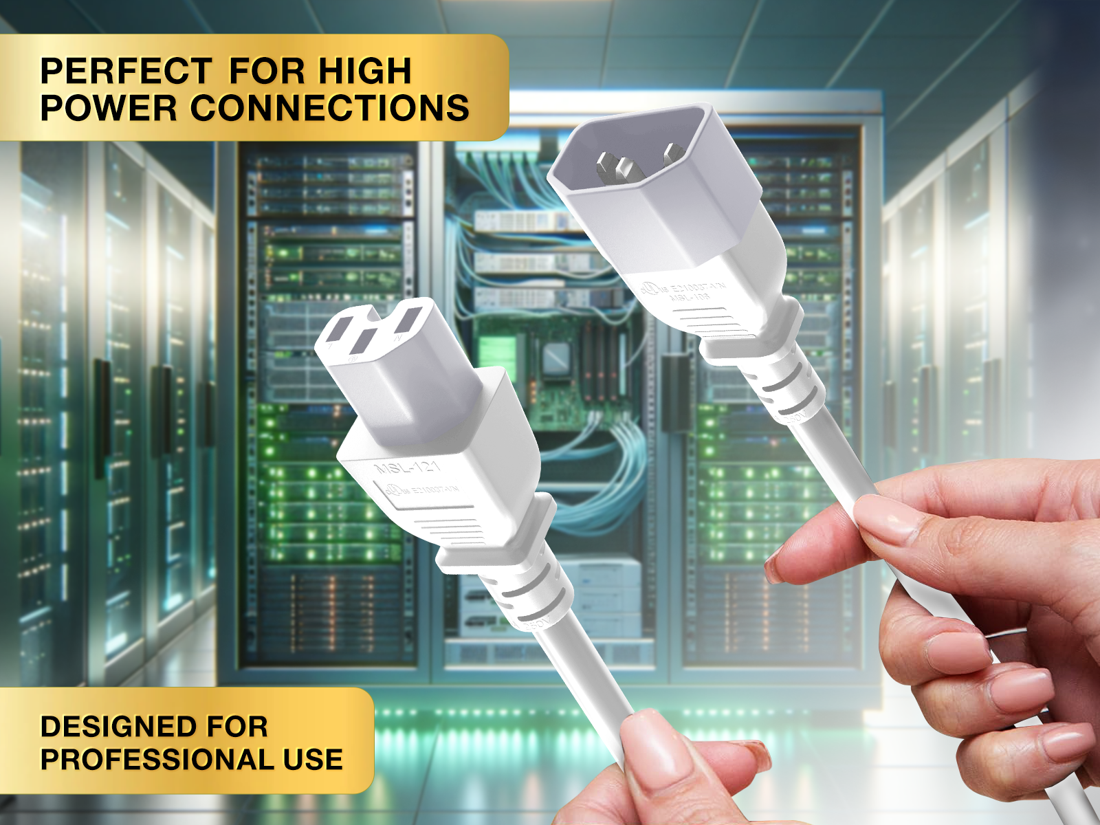 The IEC-60320-C15 to IEC-60320-C14 power cord is engineered specifically for high-temperature applications in data centers and server environments. This premium white power cable provides a reliable connection between your critical network hardware and power distribution units or uninterruptible power supplies. The robust design ensures consistent power delivery while the distinctive white color makes it easy to trace and identify in crowded rack installations.